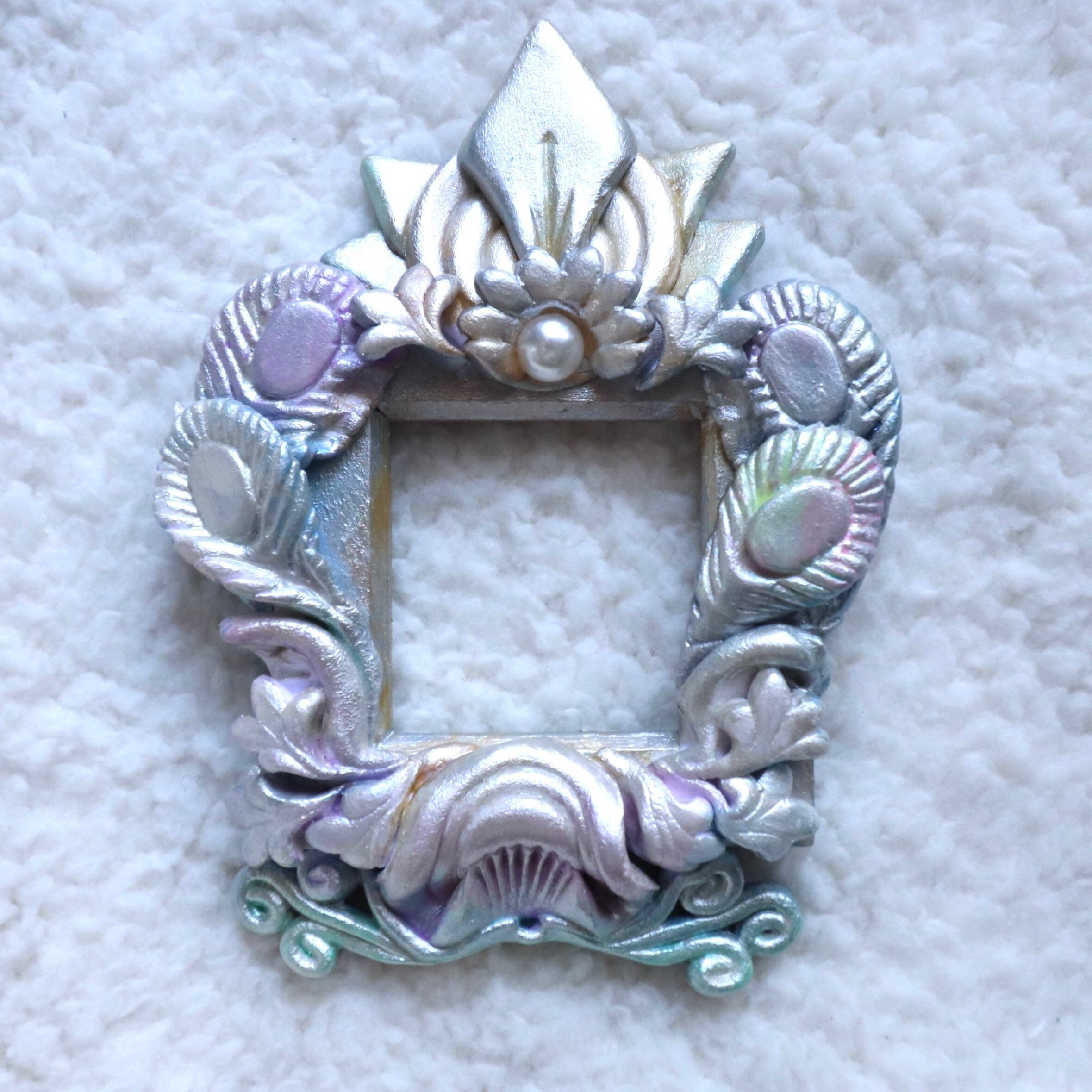 オーロラカラーの孔雀の羽をイメージした額縁です。